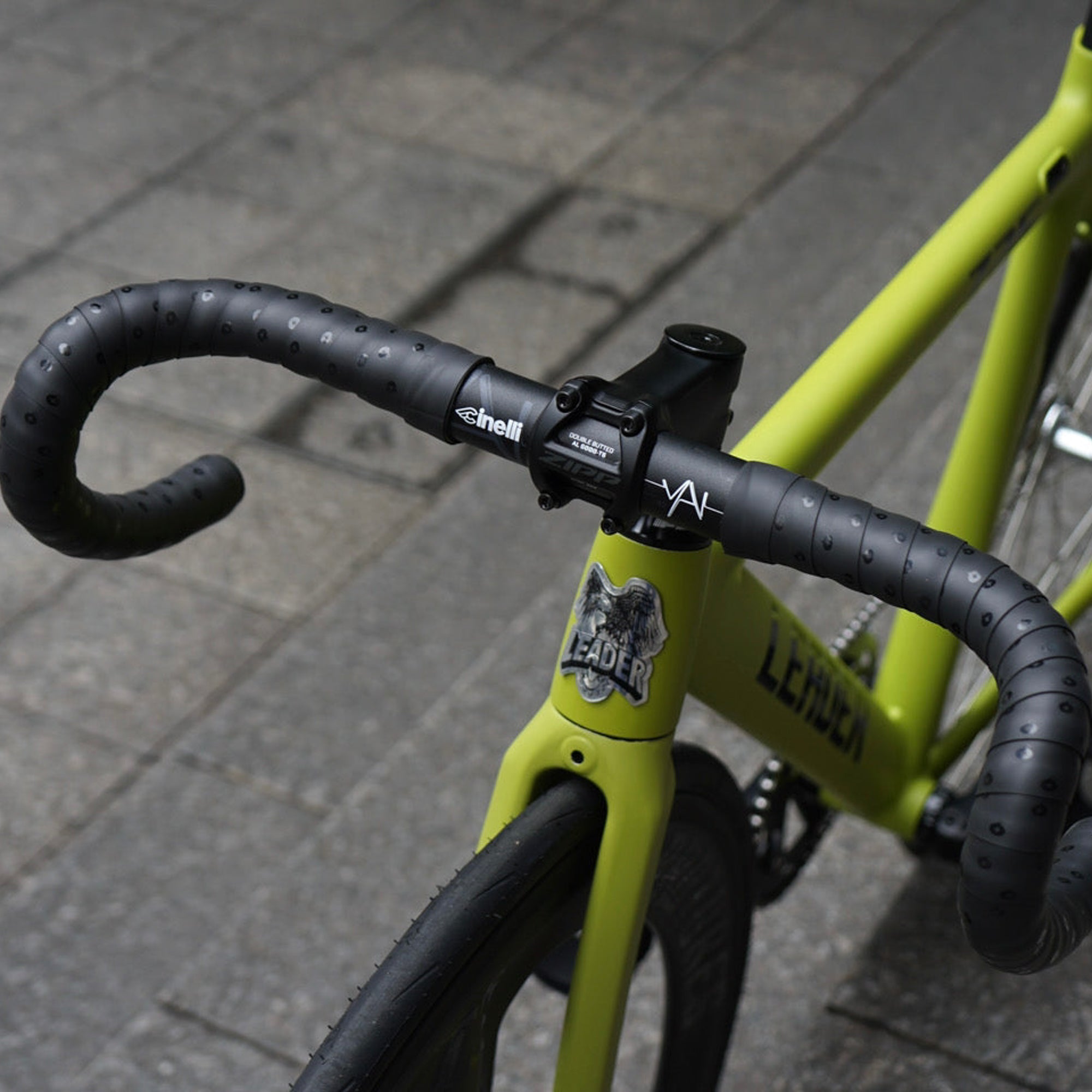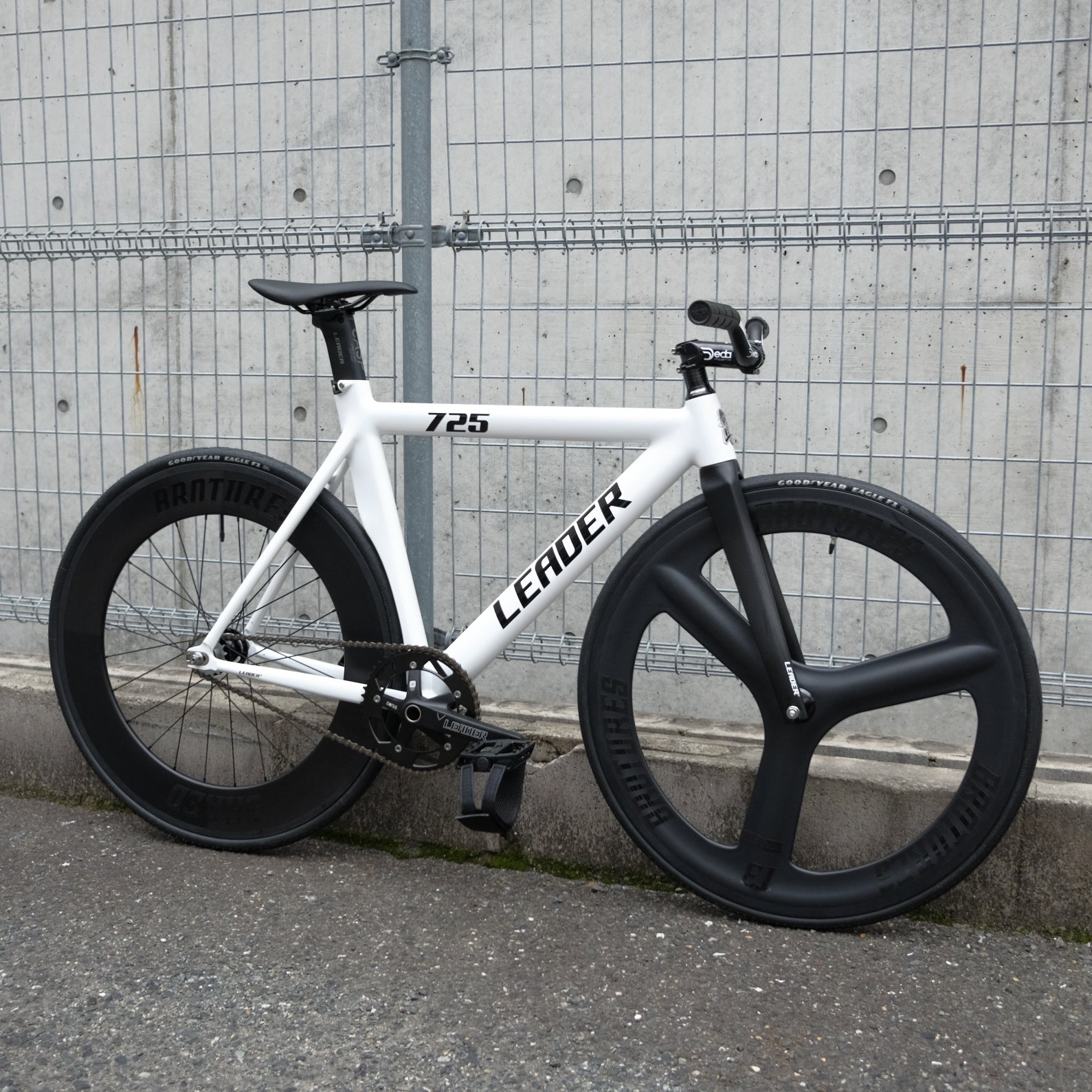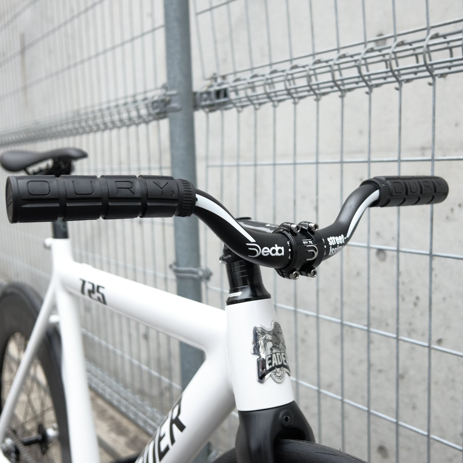 また、DEDAのハンドルバーやステム、OURYのグリップなどを取り入れ、白文字が車体カラーと良いバランスを生み出しています。どこかアンバランスな組み合わせが、個性的な魅力を引き出しています。