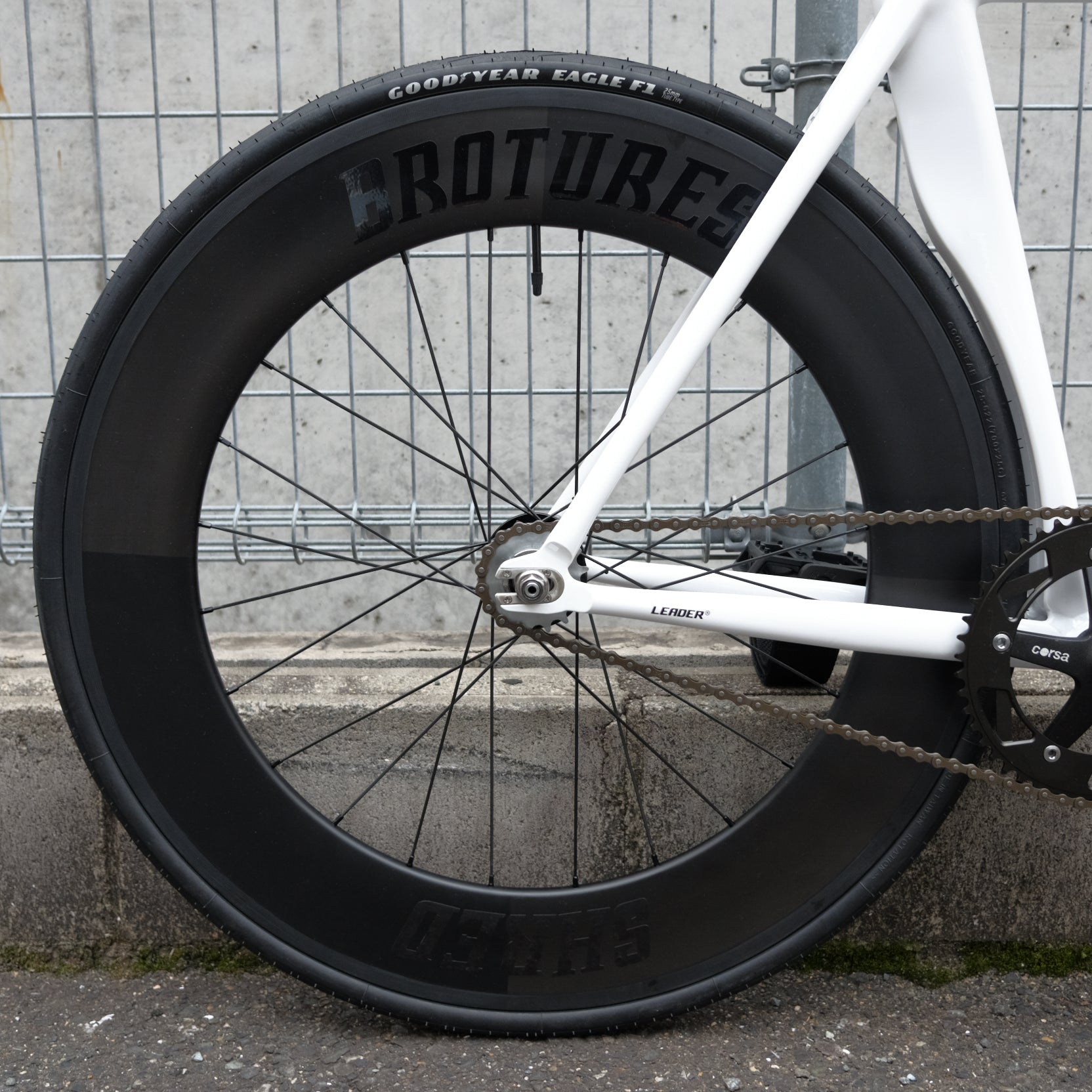 BROTURESオリジナルのカーボンディープリム、SHRED60を前後ホイールにセットしてみました。LEADERの太いチューブと特に相性が良く、SHRED88より控えめなディープリムホイールが欲しい方におすすめ。