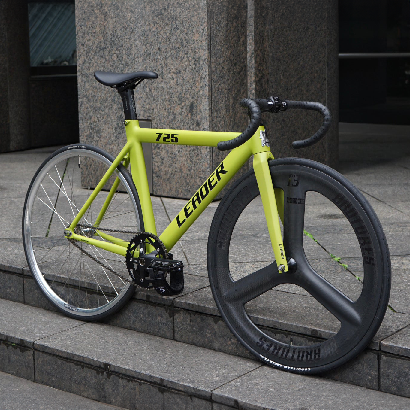 LEADER®の中でも最も歴史があるフレーム「725TR」。そのジオメトリは、トラックレースで使用されるフレームに近く、街乗りというよりはレーシングフレーム寄りの設計です。ロードバイクやトラックレースのようなアグレッシブなライディングスタイルを好む方におすすめです。