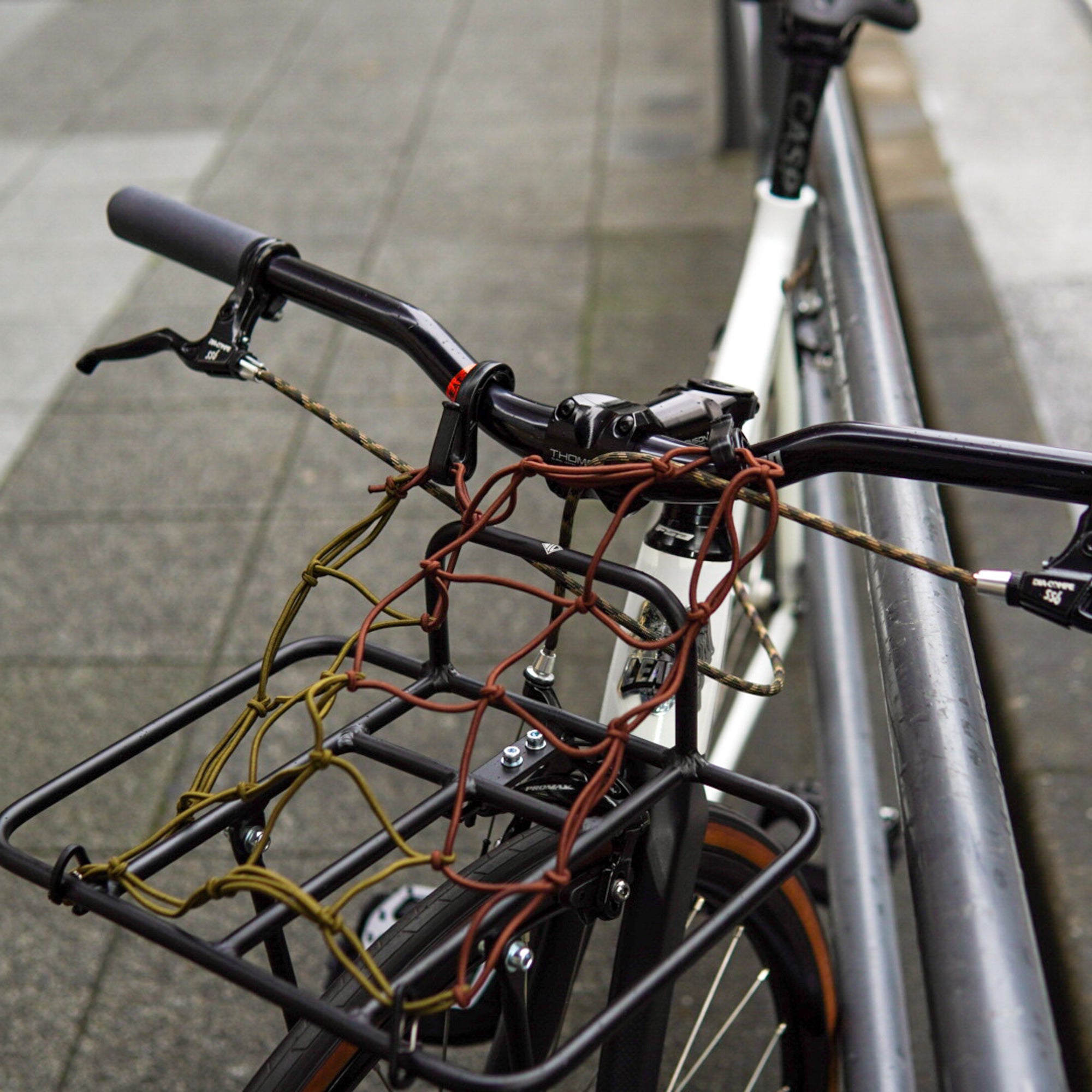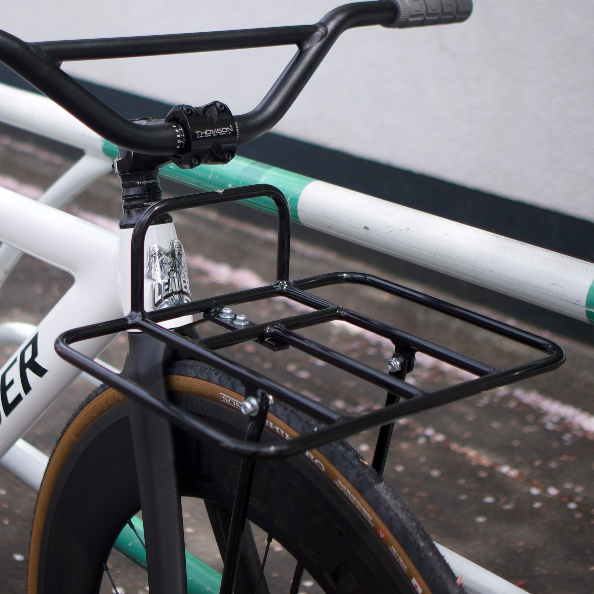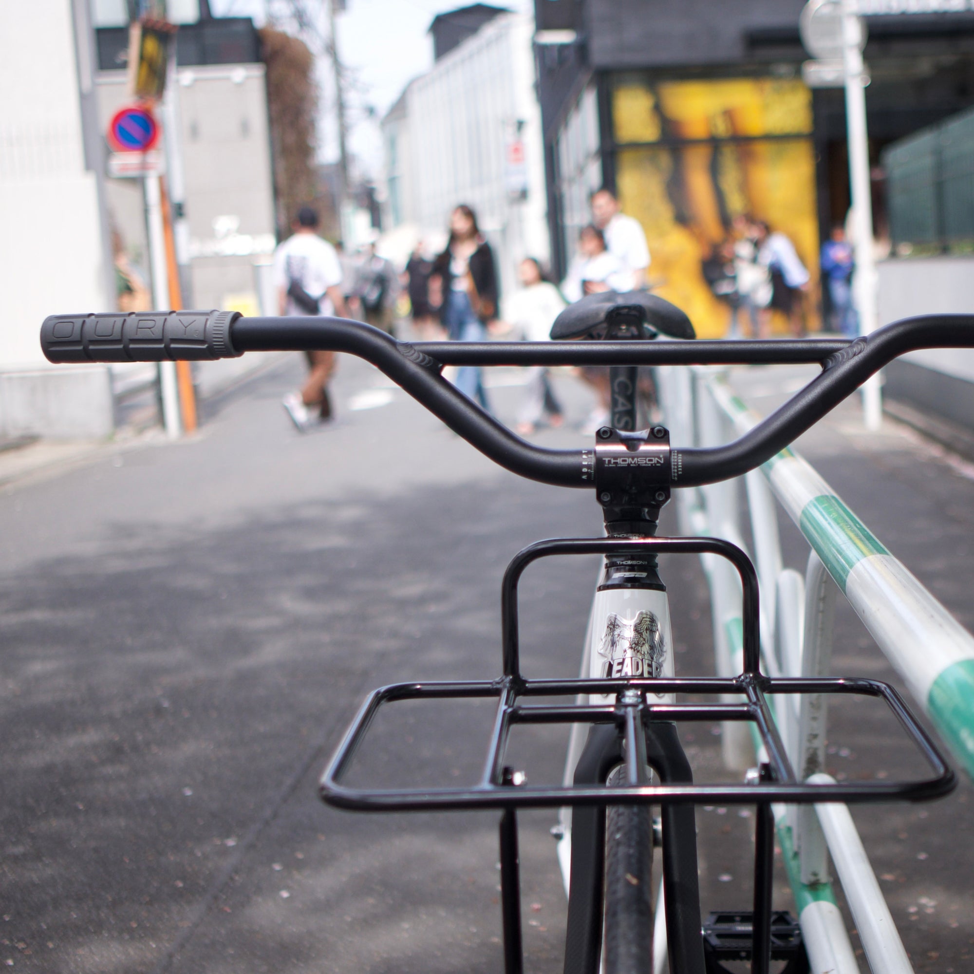 そして、ラックには「ADEPT トラスポーターラック」を装着。使い方次第でさらにカスタムの幅が広がります。ラックに合わせてハンドルも変更し、ライズ高めの「ADEPT スプレッドライザーバー」をセッティング。程よい高さと軽量なアルミ製で、ピストバイクに最適なパーツです。