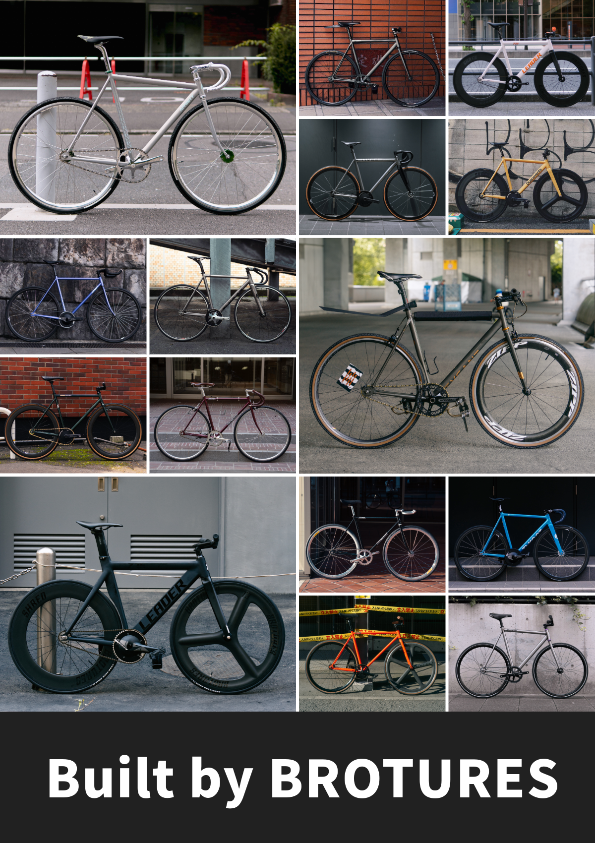BROTURESは数えきれないほどたくさんのお客さんのご要望に応えきました。ピストバイクが気になったら、愛車のカスタムに悩んだら、このバイクカタログをご活用ください。