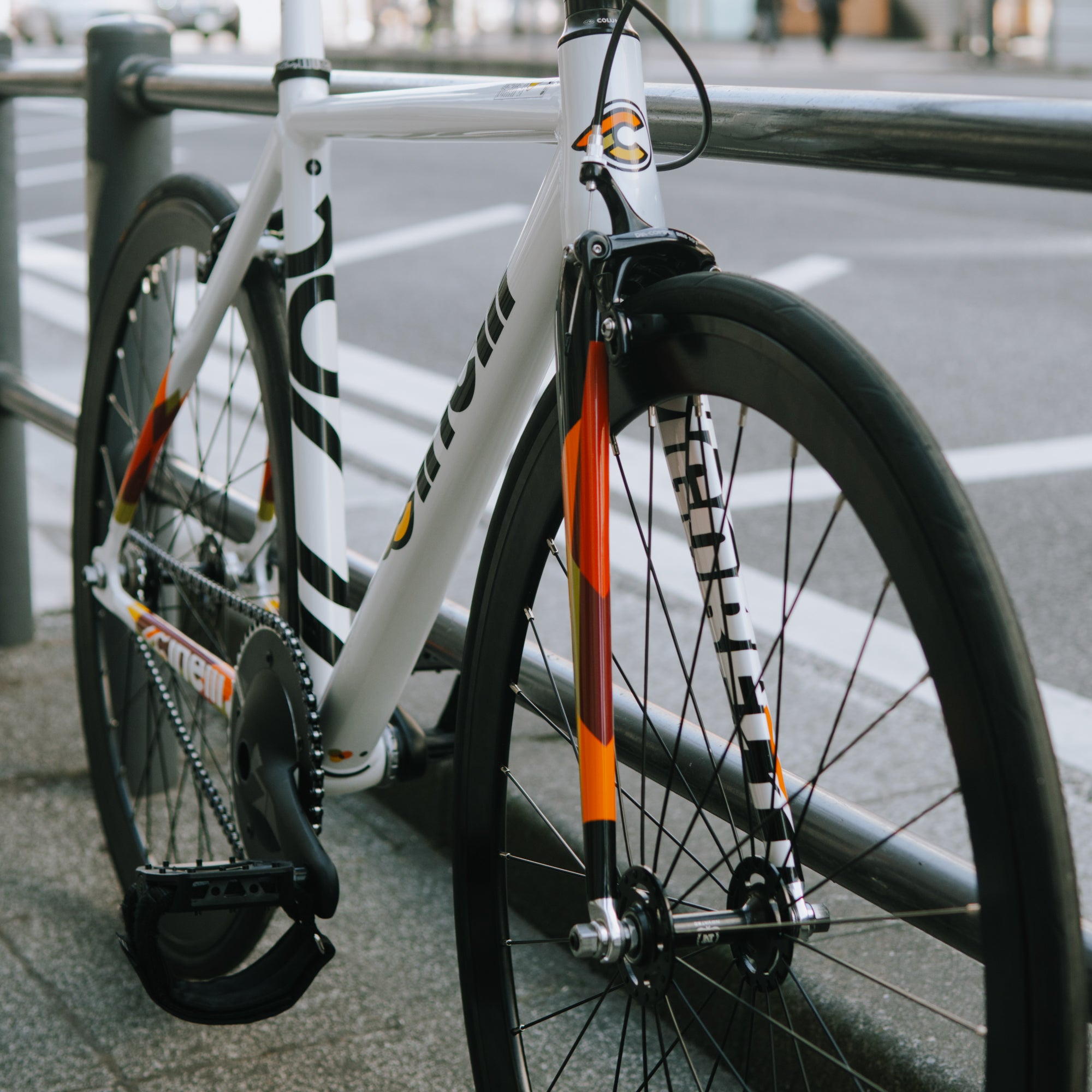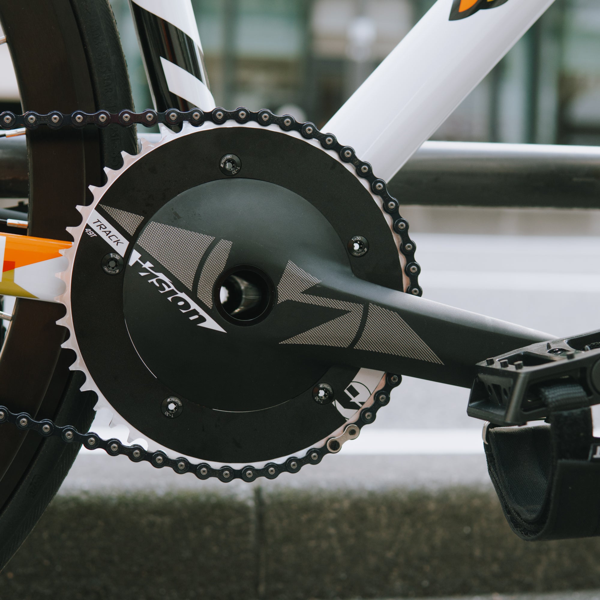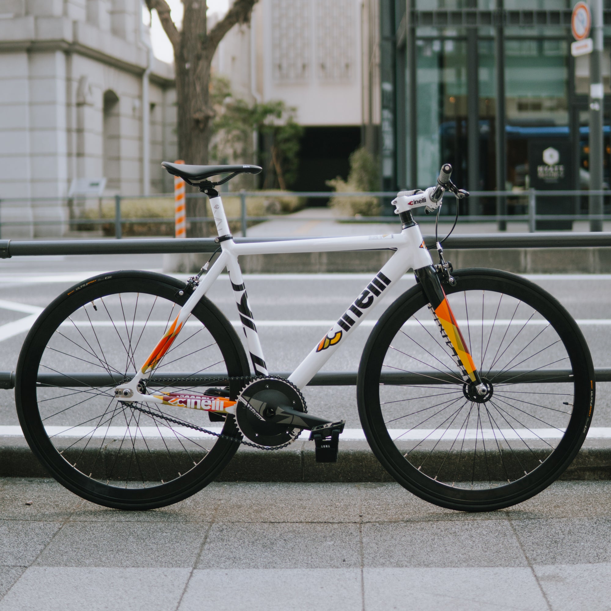 標準装備のパーツには、VISION製のダイレクトクランクを採用。エアロ型クランクは加速力に優れ、信号の多い街中でもスムーズな走行をサポート。