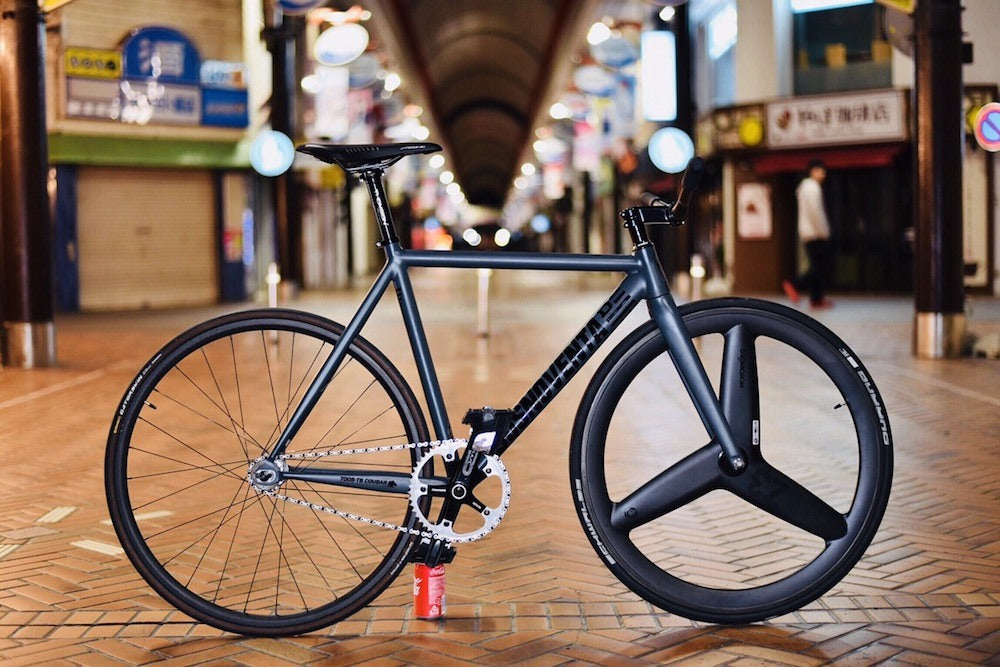 肝心のピストバイクはというと、ニューカラーのマットネイビーに、足元はカッチリOMNIUMで男前カスタム。