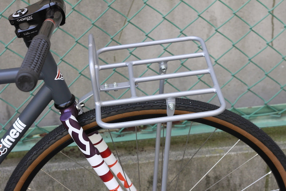 ピストバイクとの付き合い方が多様化する中で徐々に市民権を得てきたフロントラックのカスタム。 このADEPTのラックはミニマムなデザインと大きすぎず小さすぎずなサイズ感はトラックバイクにぴったりなフロントラックです。 価格も手頃なのでコミューターやメッセンジャースタイルに手軽にチャレンジ出来るナイスなアイテムです。