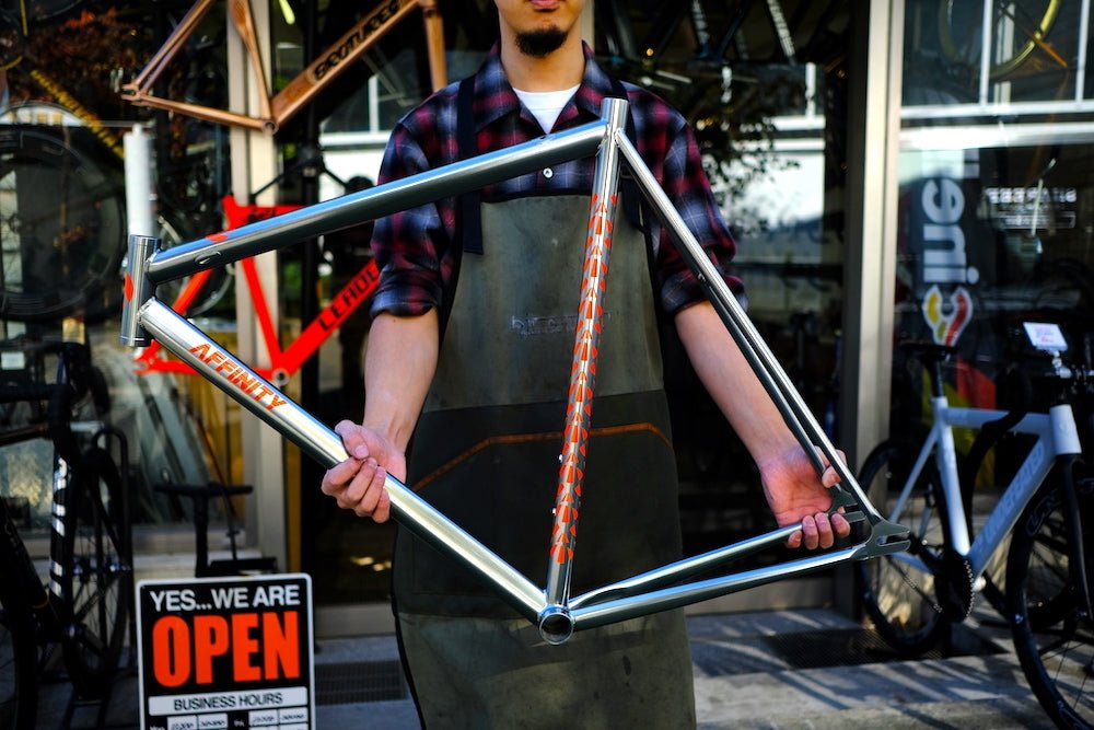 2007年の創立よりその人気も、印象付けるアイコン的な存在としても、正しく彼らのルーツといえるモデル。 前下がりなジオメトリーが特徴的なデザインは、国内もとい世界中のライダーを魅了し愛され続けています。 そしてこの一台は彼らのホームグラウンド"ニューヨーク"にて、過酷な環境にも屈せず日々走り続けるメッセンジャー達と共にテストされて生まれました。 特に極めて短いホイールベースと角度が立ったジオメトリーにより、クイックでとキレのある走りを与えてくれます。 ニューヨークをバックボーンとして生まれたこのフレームは、この街東京でも他の自転車では味わえない軽快さを体験できるはずです。