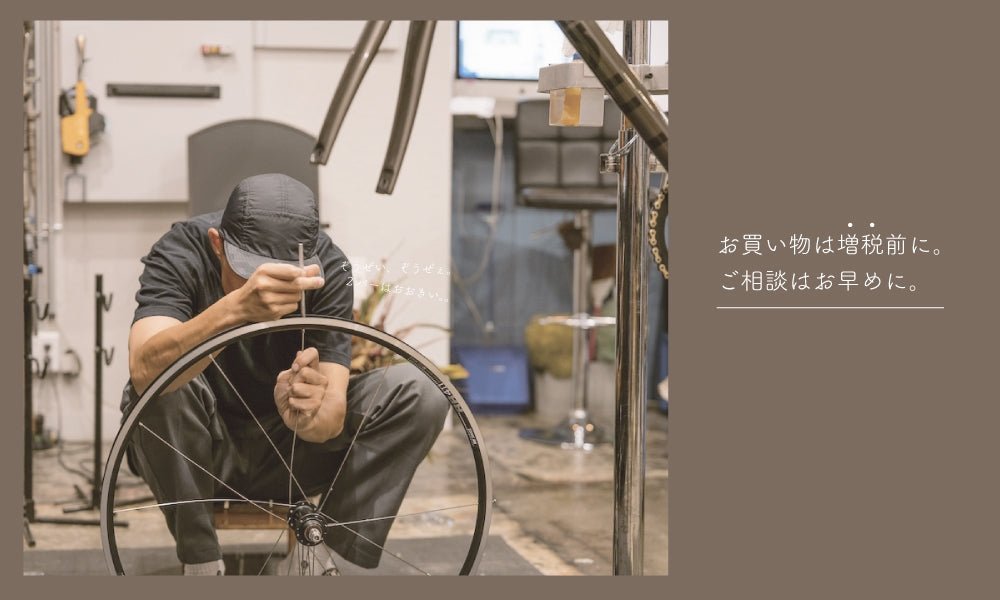 あと僕らが提携してる分割払い(ローン)もやっぱ9月中に組んだ方がいい気がしませんか? 多分月々数100円くらいの違いなのですが、そこはやっぱ精神衛生的になんかいい気がします。 なので、ご相談はお早めに。自転車に限らず、ホイールとかもできれば前々からじっくりご相談させてください。 前回(5年前?)の経験から申しまするに、最後の1週間は結構パニパニしました。 最後の3日は充分なご対応ができなかったかもしれません。 そのくらいパニパニします。 全てのお客様としっかりじっくりご相談させて頂きたいっていうのが僕らの本心です。 もし可能であれば、時間に余裕を持ってお越し頂れば幸いです。 JUNKI
