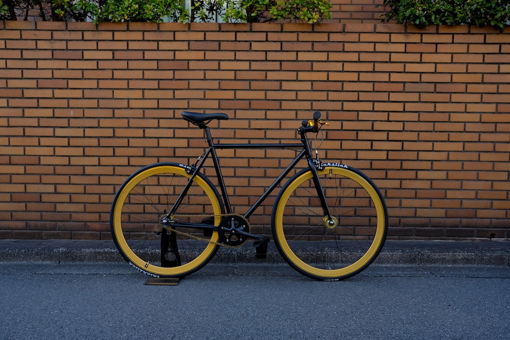 スポークは黒で、組み方は「モランボン」