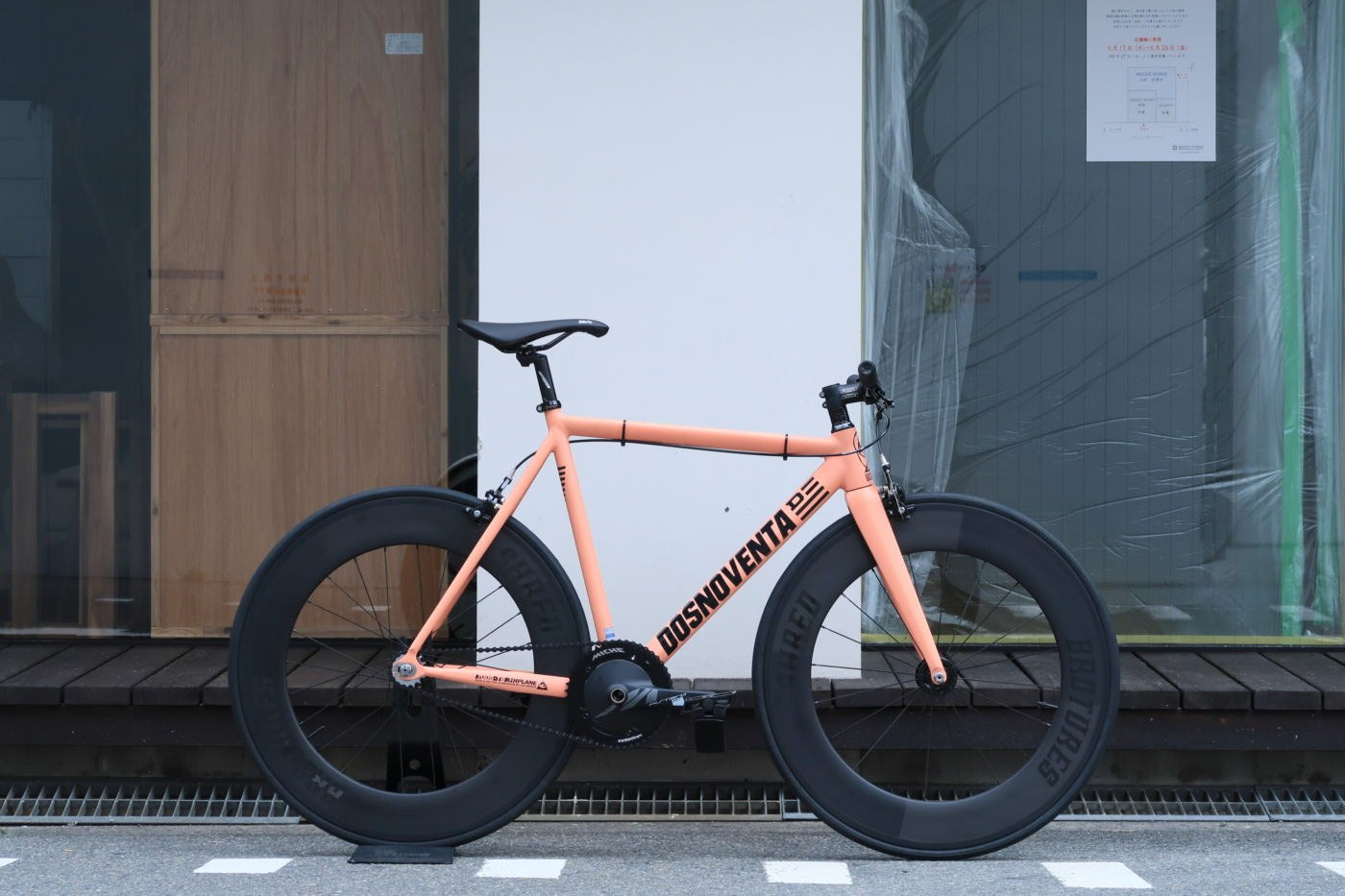 この方はFUJI TRACK ARCVから載せ替え。 白から黒に、パシュートからホリゾンタルに、かなり乗り心地変わりましたね! 今まで使っていたパーツでもフレームが変わればそれはもう別物。 リアのRAKETAのオレンジハブがベニスによく合っています。