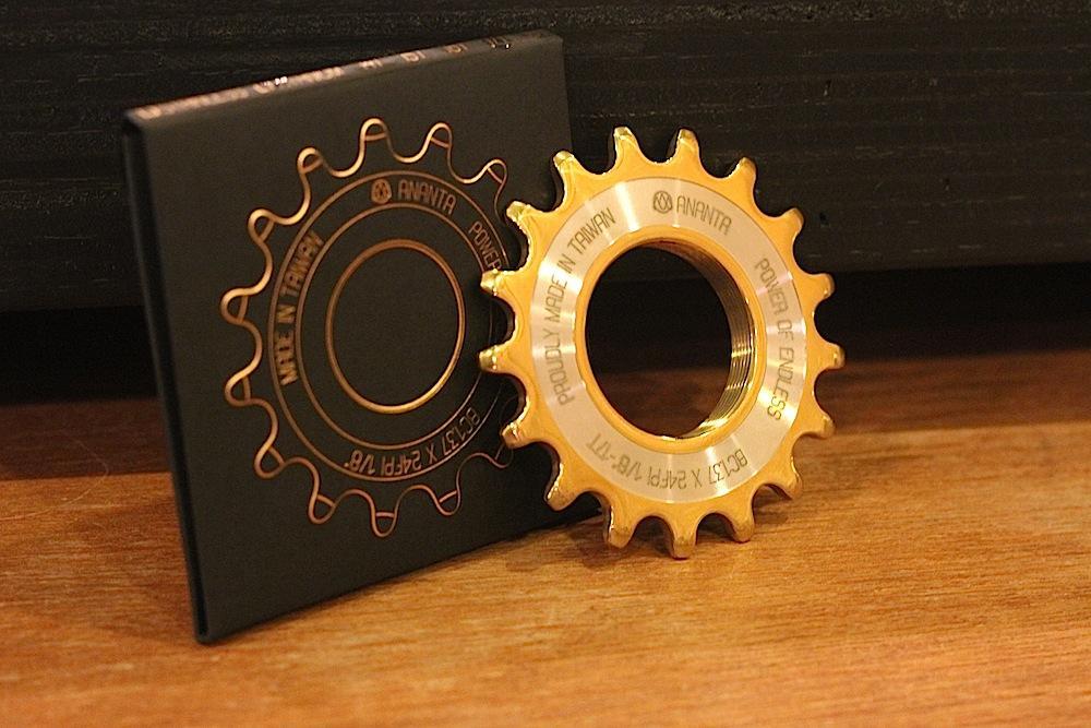 この”ANANTA COG"は、ステンレススチール製のコグにチタン加工を施し、さらに加工前に最大限ポリッシングを行って驚くべきチェーン離れとピストでは必須の耐久性も実現。