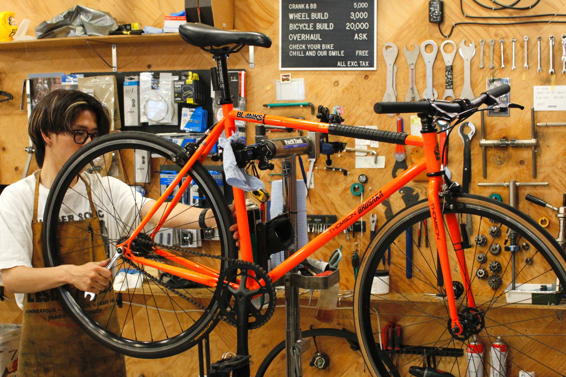 お店ではブレーキ、タイヤ、チェーンの確認はもちろんですが、ハンドル周りの位置やボルトのトルクチェックなどメカニカルな部分から自転車の拭き上げもさせていただいてます!