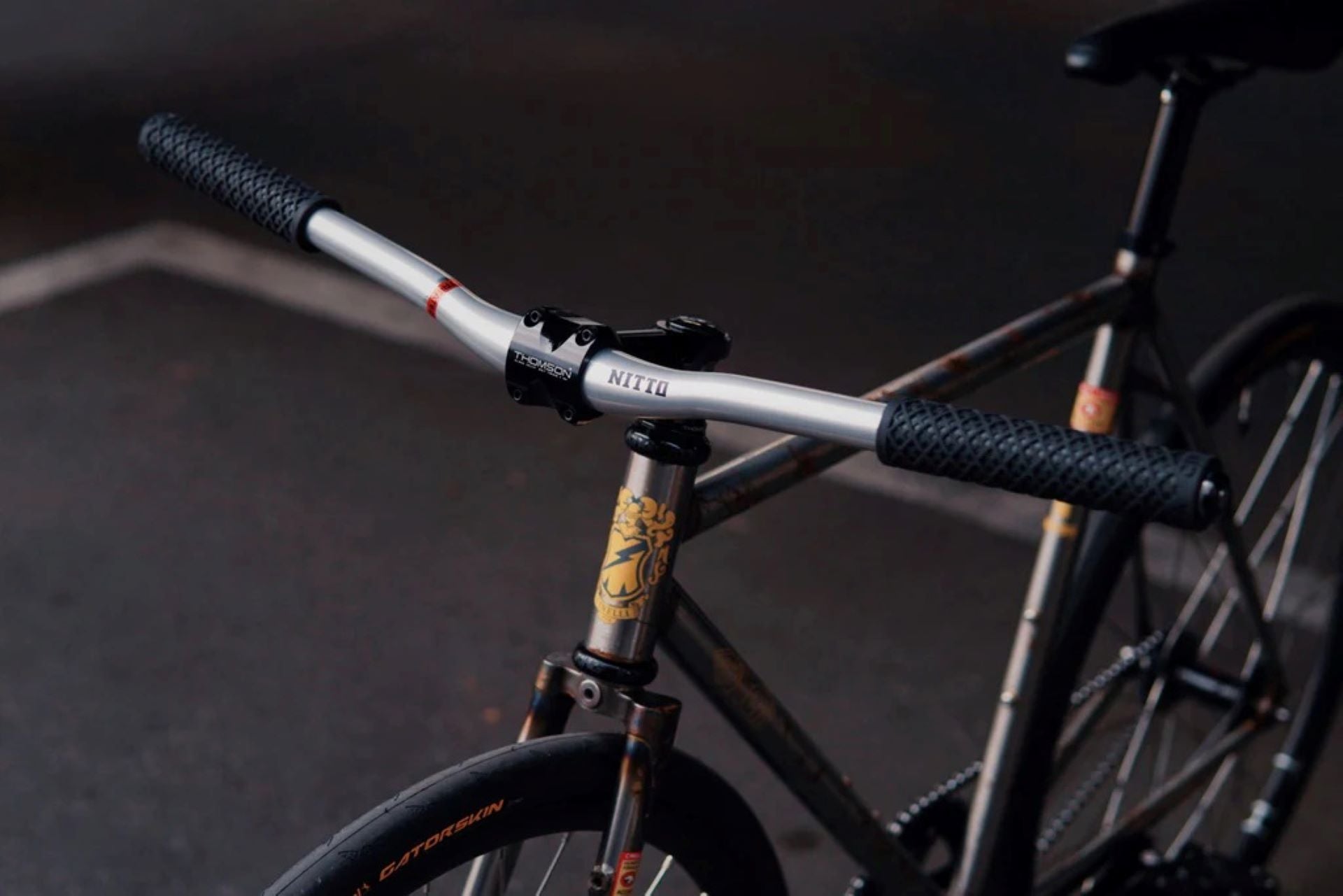 同じNITTO製ですが、1つ目のFOR SHRED BARとは打って変わって高ライズかつバックスウィープが強めのハンドル。正直、スピード出したい方にはおすすめできないですが、ゆったり街乗りや上体を起こして視野を広げて安全に乗りたい方はこのハンドルがオススメ!