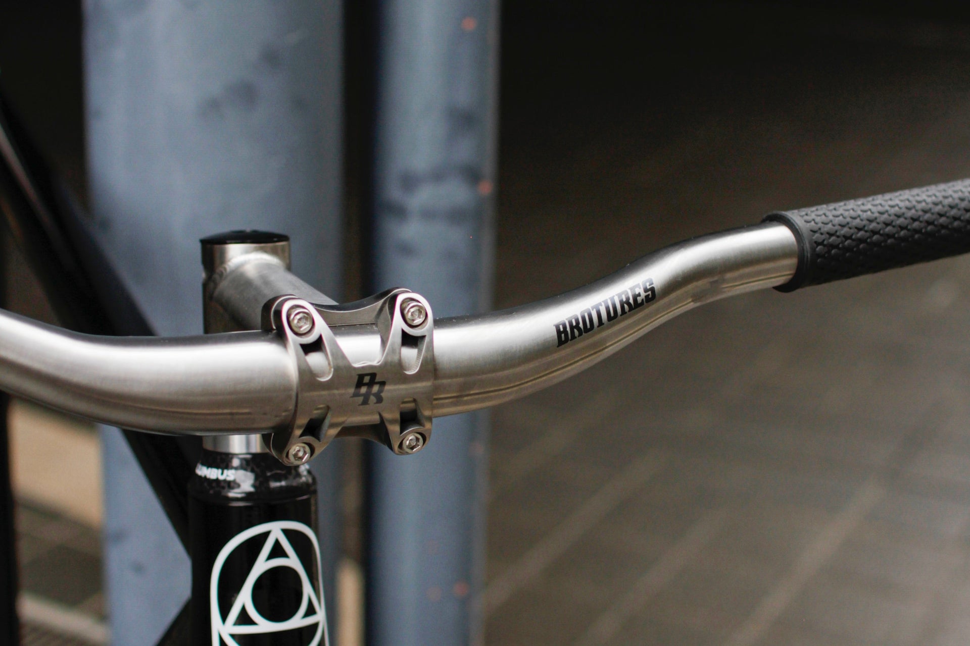 製造の難易度やコスト面においてチタンハンドルの多くがフラットバーになりがちですが、BROTURESはライザーバーとして製作。