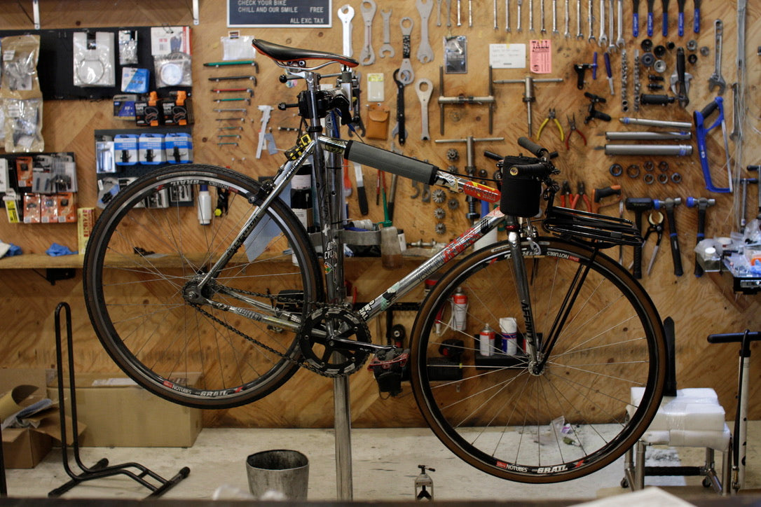 この確認作業をすることで、ピストバイクのオーナー様の乗り方、クセがわかることもあり、メカニック的に楽しいポイントではあります。笑