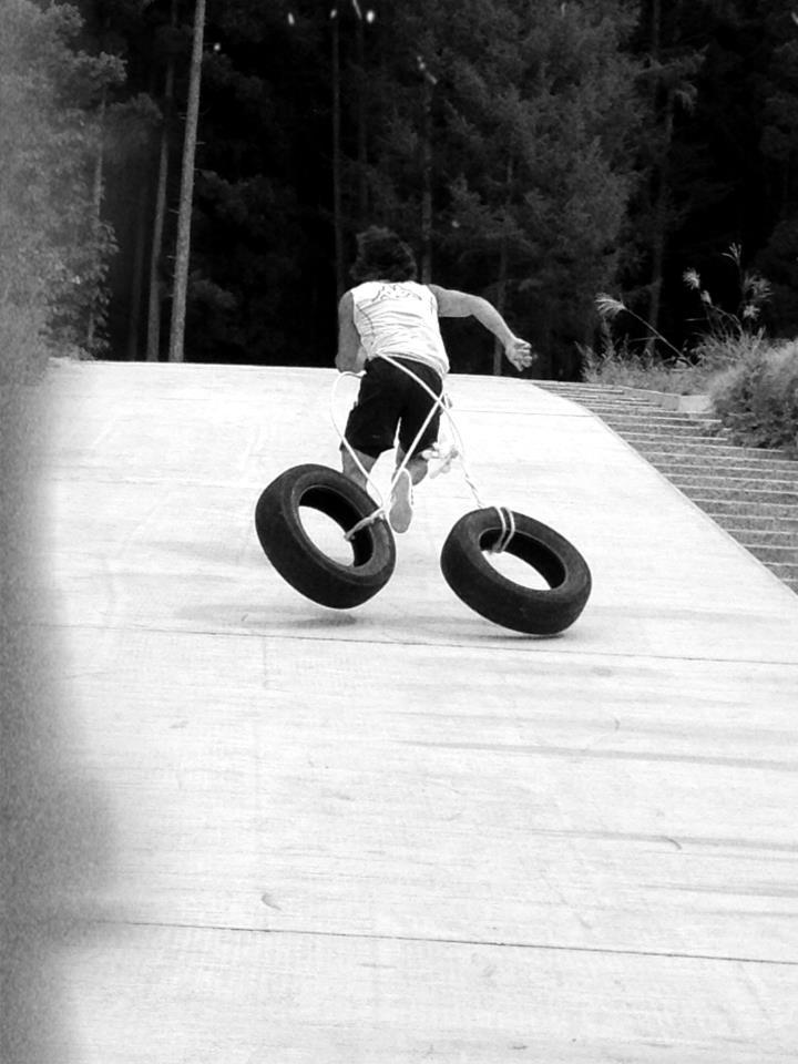 坂道ダッシュ!タイヤ引きながらのパワー系トレーニング。