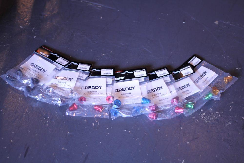 入荷したら即完売してしまったGREDDYのハブナット。前回はBLACKなどド定番のカラーばかりでしたが今回は全色入荷しました!