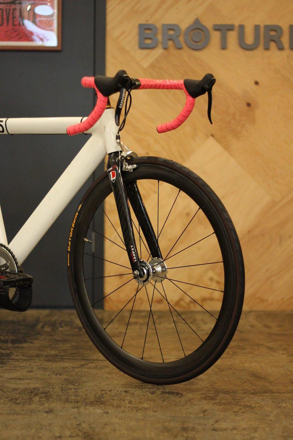 お客様のリーダーバイク735TR。長年使い込まれたピストバイクに出会うと、純粋にカッコいいなって思うと同時に、この商売やってて良かったなって思います。