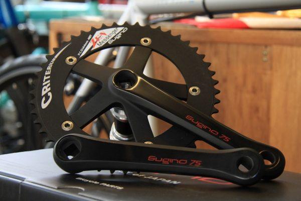 今回出品されるSG 75 クリテリウム。こちらのクランクセットは競輪で使用されているものと同様のクランクアームにチェーンリング(48T)とカートリッジBBがセットになった商品です。価格は48,000円。