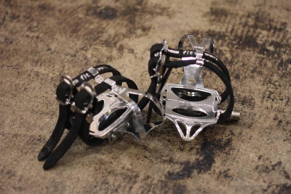 トークリップは昔ながらのスタイルで、トークリップとトーストラップを付けて使います。上記のペダルストラップに比べてホールド感は弱めですが、つま先の位置が決まるので常に母指球の位置を保ちながらペダリングができます。ボリュームある靴とは相性悪いですがクリップにもサイズがあるので、ご相談いただければと思います。