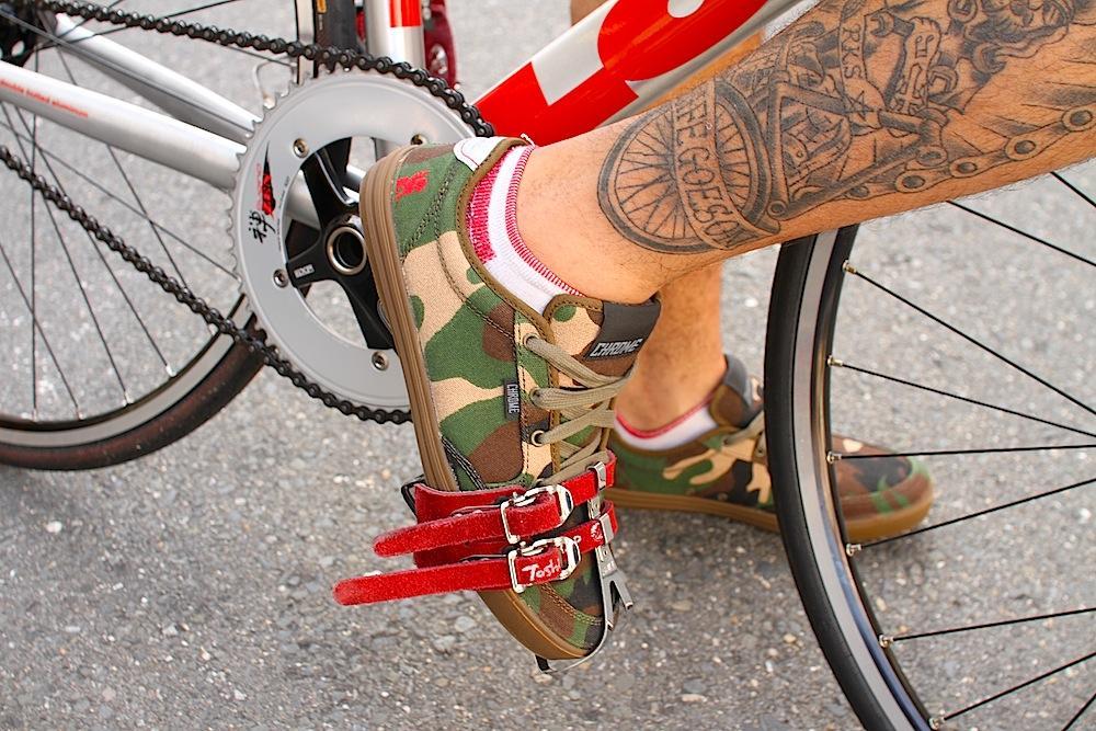 ペダルストラップは比較的新しいスタイルで、FGFSなどトリックをする人は大抵ベルト式のストラップを使用します。ホールド感が強く、スキッドなどペダルを無理くり引き上げた時の安心感があります。着脱が簡単なのも初心者の方にオススメなポイント。靴を選ばないのも利点。スキッドを覚えたい方はこちらが入り口です。