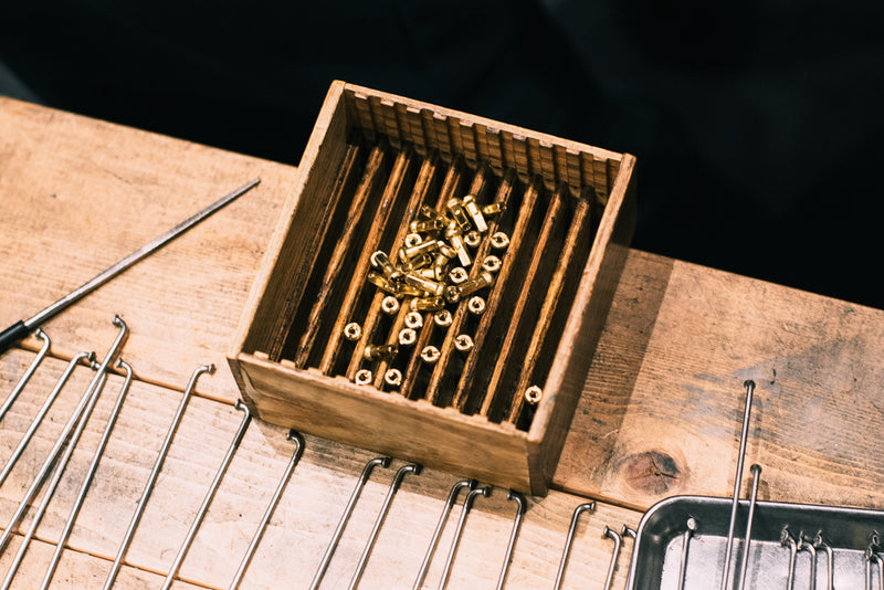 スポークをリムに固定するネジ状のパーツ。素材次第でホイールの軽さとメンテナンス性が変わります。基本的にはスポークに付属のものを使うので、特にこだわりたい方は指定してみてください。カラーも豊富なので、スポークとの色合わせでさらに細かく作り込めます。誰がこんな小さいところ見るんだよって感じですが、ピストフリークはマストな箇所ですよね。