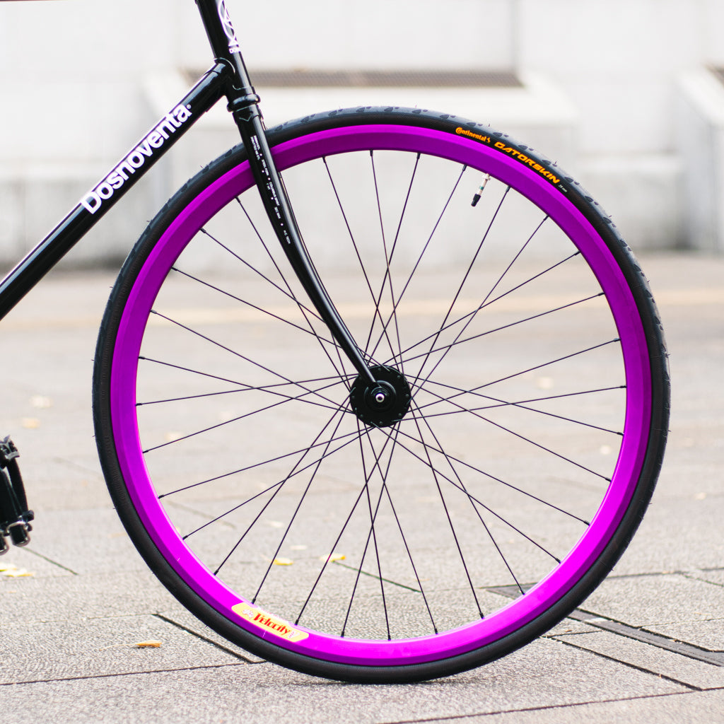 最大の魅力は、すべてのパーツを自分で選べること。「とにかく速く走りたい」「毎日乗っても壊れない耐久性が欲しい」「スポークの色だけ変えたい」走り方・用途・好み、あなたの理想をそのまま形にした完全オーダーメイドのホイールが手に入ります。スポーク本数を変えれば空気抵抗や剛性も変わり、ピスト特有のスキッドでリアホイールが傷んでも、パーツ単位で修正できるのもカスタムホイールならでは。