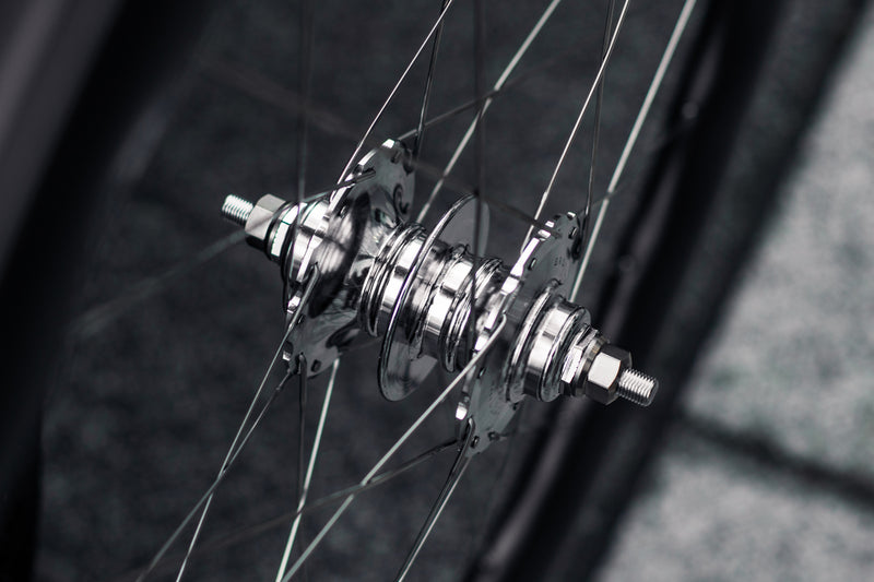 ホイールの心臓部とも言える部分。ハブの選択が、ピストバイク全体の走りの質が大きく変えます。回転の軽さ、踏み出しの鋭さ、巡航の伸び、耐久性、まずはどう走りたいかをイメージしてみてください。毎日の通勤なのか、週末のライドなのか、それともレースなのか。幅広い選択肢から、用途に合わせて最適なグレードをご提案します。
